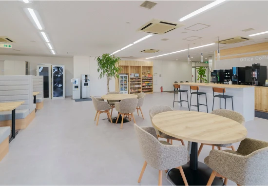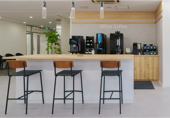 ユニマットグループはオフィスコーヒーサービス最大手として、カフェの運営や人の流れから逆算した使い勝手のいいカフェデザインをご提供しております。カフェのデザイン・設計・施工からコーヒーサーバー・給茶機の設置、また有人でのカフェ運営(スタッフの派遣)に至るまで、すべてのサービスをワンストップでご提供いたします。