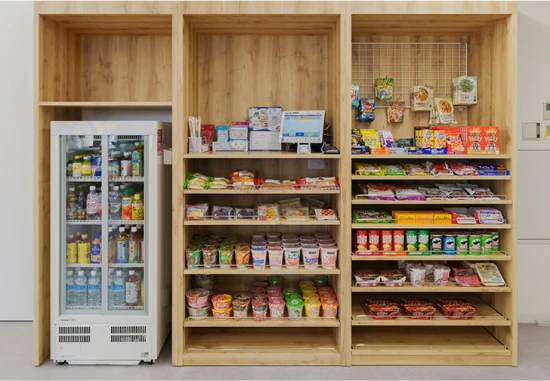 コンビニスペースを造る場合、まず床や壁、コンビニ棚などの什器類をどのようにするかを検討し、デザインをおこないます。棚をどの向きに設定するか、人の流れをどのようにコントロールするかをしっかりお打ち合わせすることが利用率の高く使い勝手のいい場所をつくるうえで欠かせません。施工完了後のコンビニの商品供給に関してもユニマットグループで一貫して承ります。